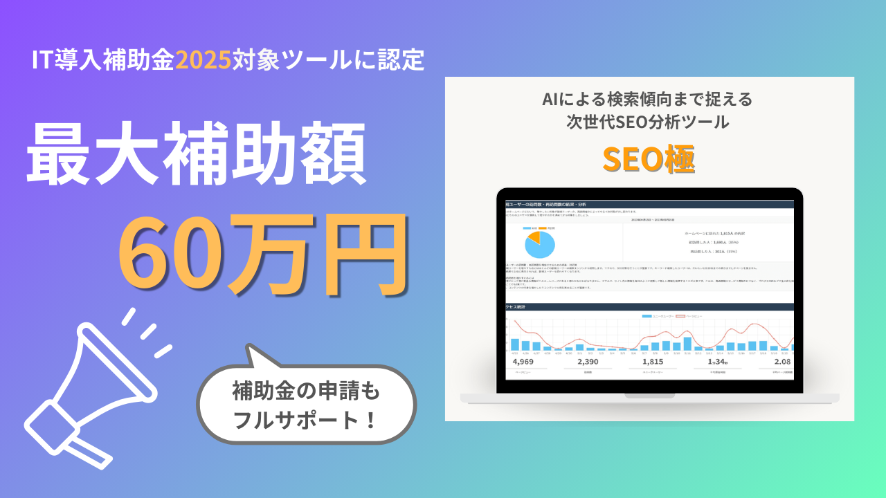 【最大60万円補助!】SEO極が"IT導入補助金2025"対象ツールに認定されました。